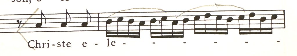 MacMillan’s piece gave us gimmicks like winding-down slides, haunting melismas, and murmured text. Langer leaned into tremolos, tone clusters, and cheeky motifs. Vrebalov, in turn, gives us three main tricks—each one adding a distinct texture without feeling too gimmicky or overindulgent.