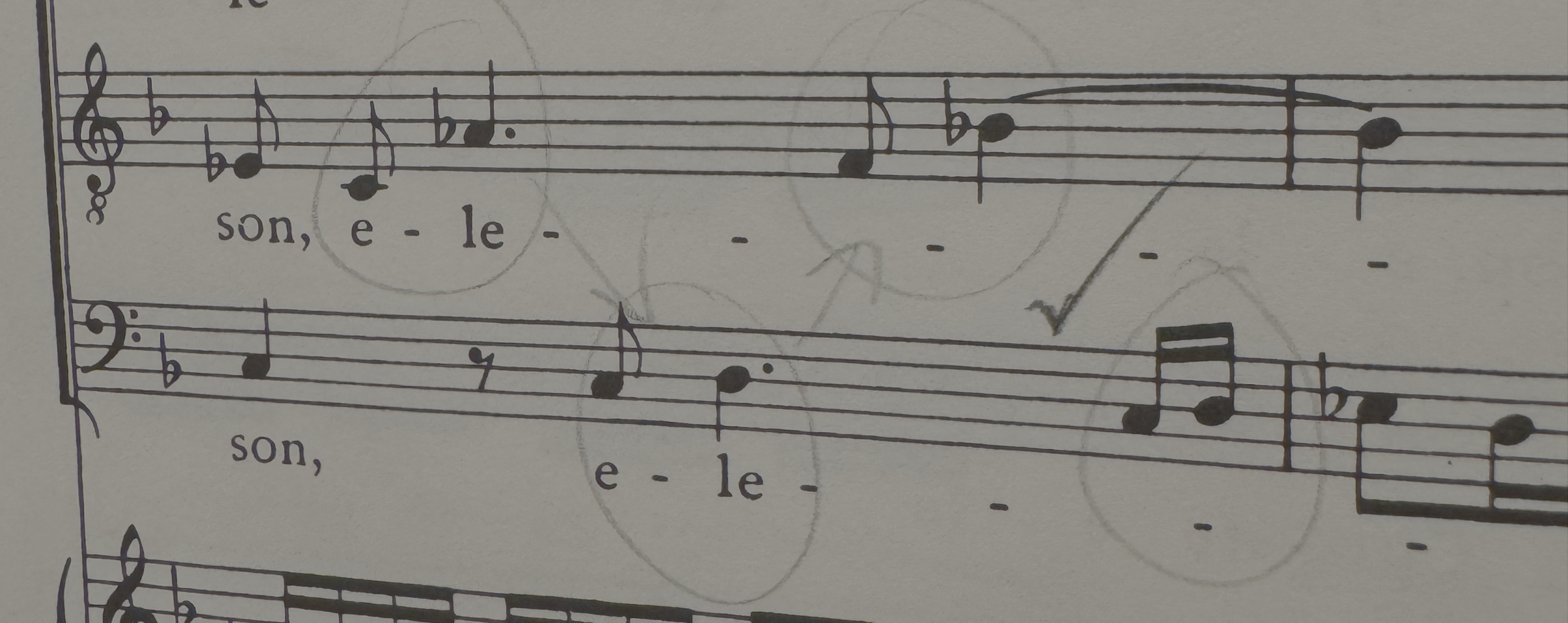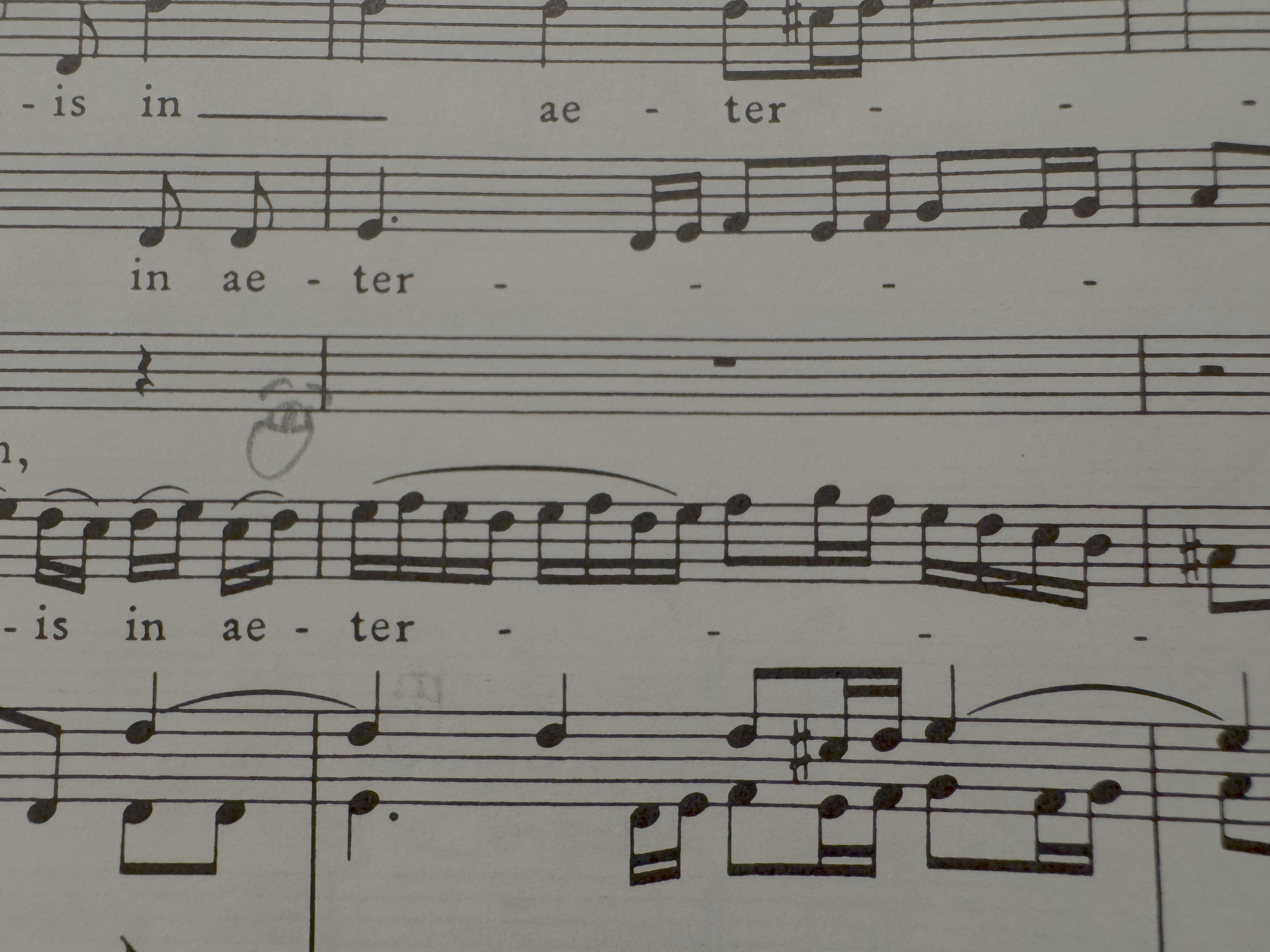 Unlike re-learning the Mozart Requiem—where you can choose from hundreds of different recordings, all with idiosyncracies that don’t match your current conductor’s choices—Love Canticles has no recordings, having just been finished a few months ago. We’re the first voices to give shape to these markings, dynamics, and gestures. It’s up to us to breathe life into the dots on the page.